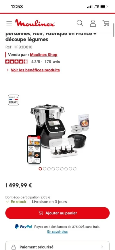 I-Companion Touch Pro, Robot cuiseur, 18 fonctions, Connecté, Pesage intégré, Recettes sur l’Ecran, Capacité XL 10 personnes, Noir, Fabriqué en France + découpe légumes