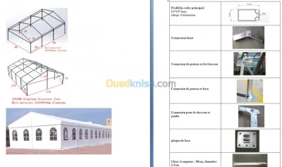 Acquisition De Chapiteaux Et Tente: Tente 36 m² : -Largeur : 4m, longueur : 9m -Hauteur du coté : 2,5 m, hauteur de la crête : 3,2m -Profil du cadre principal : alliage d'a