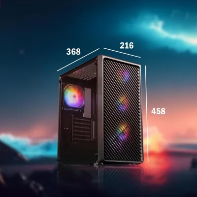 CPU : AMD Ryzen 5 8400F COOLING : DEEPCOOL AG200 MOTHERBOARD: ASROCK A620M-HDV RAM : 16GB 5600MHZ DDR5 SSD : 256GB NVME SSD PCIe 3.0 GPU : ASRock RX 6600 Challenger 8GB PSU : GAMDIAS AURA G