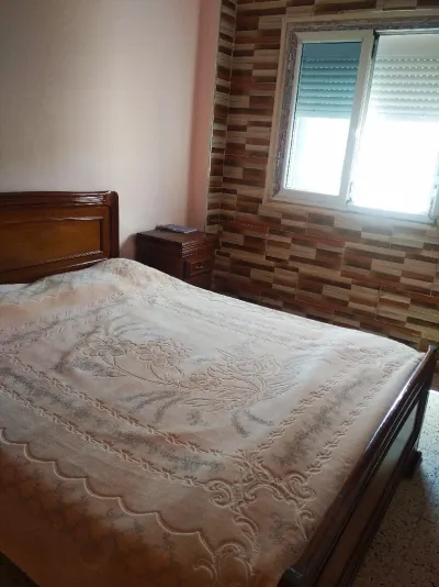 F3 5eme étage avec acenceur -superficie 75m2 - meubles grand classe yji fih : table sale à manger avec 6 chaises ,salon en cuir 6 places , table de cuisine 2 chaise copirative promotion