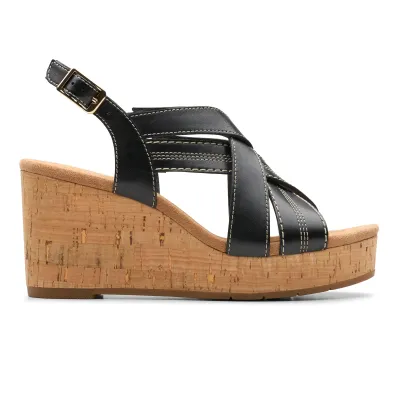 Notre talon compensé en liège sculpté Sabina Sling élève votre look avec juste la bonne stabilité. Confectionné avec une tige en cuir noir souple dans un design croisé élégant, il