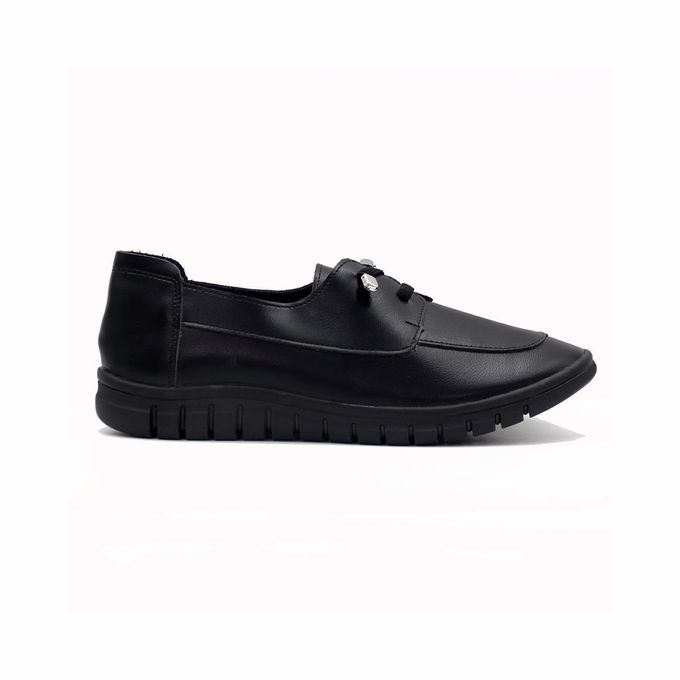 Ce modèle présente un bout arrondi au style classique, accompagné de coutures décoratives soignées. La semelle, conçue pour assurer confort et stabilité, dispose d’une surface antid