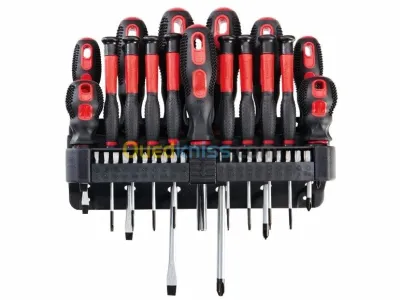 Bonjour, Je mets en vente ce set de tournevis et embouts, comprenant 37 pièces dont : 4 tournevis cruciformes, 4 tournevis plats, 8 tournevis de précision, 20 embouts de 25 mm 1