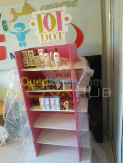 notre enterprise est spécialise dans la création et la réalisation des présentoir et plv ainsi des silhouettes personalisé avec habillage en autocollant .