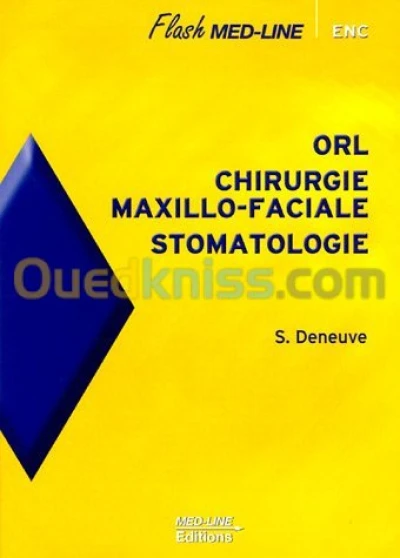 Titre : ORL, chirurgie maxillo-faciale, stomatologie Auteur : Sophie Deneuve Editeur : Med-Line Année : 2005 Théme : Médecine Et Paramédical Sous-théme : Orl & Stomatologie ISBN : 97828