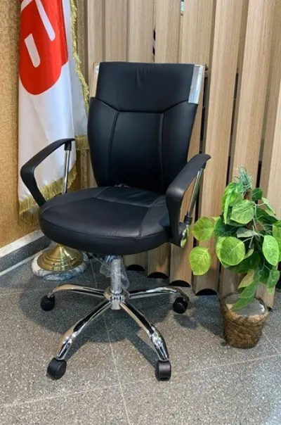 Une chaise opérateur de bureau en similicuir Mécanisme d’oscillation et pivotant Couleur Noir Accoudoirs Pieds chromés Points forts : Mécanisme pivotant et d’oscillation pour un co