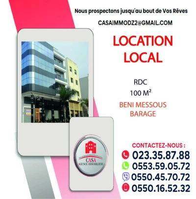 Beni Messous, Sidi Youcef, au bord de route, casa immo met en location un local 100% commercial d'une superficie de 35 m² idéal pour toutes activités commerciales. état brute Prix: 2.
