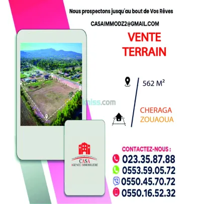 À vendre : Terrain à CHERAGA - ZOUAOUA - 562m². Cheraga, Zouaoua : en bord de route vert bois des cars "dely brahim" l'agence immobilière casa vous propose en exclusivité la vente un T