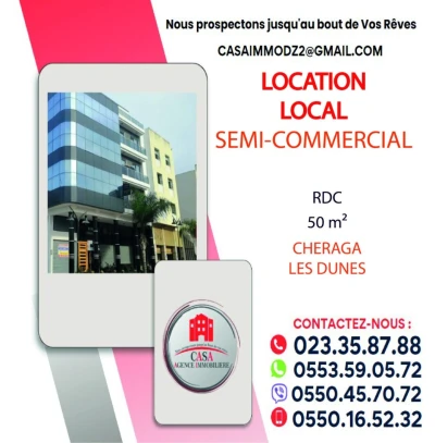 A LOUER: LOCAL 50M² - CHERAGA - LES DUNES. Cheraga, Les Dunes — Casa Immo propose à la location un local semi commercial de 50 m², fini et équipé de toutes commodités, idéal pour b