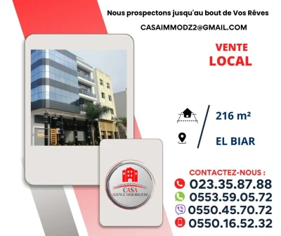 El Biar, Saint Raphaël, au bord de route, Casa Immo vous présente à la vente un local 100% commercial avec 02 rideaux, d'une superficie de 216m² idéal pour toute activité. Avec: acte