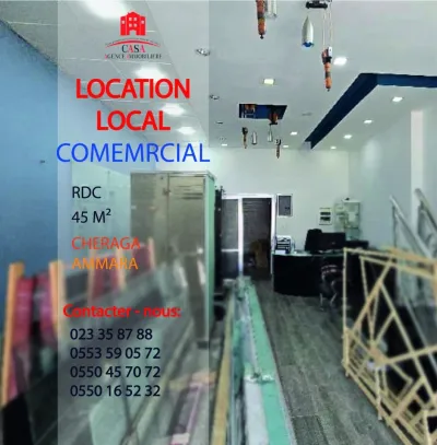 Cheraga, Ammara, au bord de route, casa immo met en location un local commercial d'une superficie de 45m², fini avec toutes commodités: rideau électrique - vitrine - sanitaire et climatis