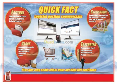 Offre pour tous les commerçants grossiste, détail, supérette, magasin, & tous les activités commercial QUICK FACT (ORIGINAL) est un logiciel de gestion commerciale (Stock et Facturati