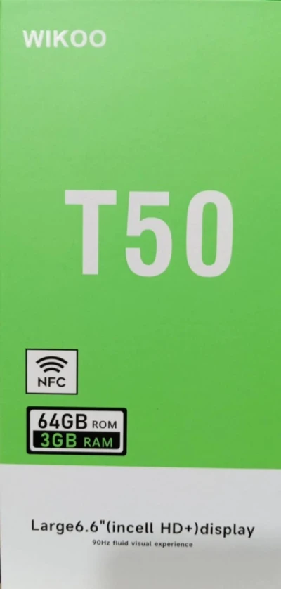 SMART PHONE WIKOO T50 6.6" HD 64GB ROM 3GB RAM 5000mAh Name : WIKOO T50 Display : 6.6" (HD+) Screen Camera : 5MP Front Camera 13 Rear Camera APK Facebook Youtube Whatsapp System : Android 13