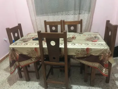 📝 Fiche Technique – Table avec 6 Chaises 📌 Caractéristiques générales : • Type : Table à manger avec 6 chaises • Fabrication : Locale 🇩🇿 🪵 Matériaux : • Table :