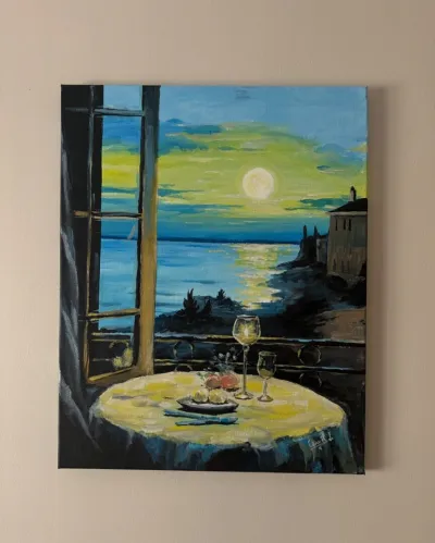 Tableau fait main mer méditerranée peinture à l'huile dessiné sur toile -Dimensions : 38/33 -Livraison disponible sur Alger