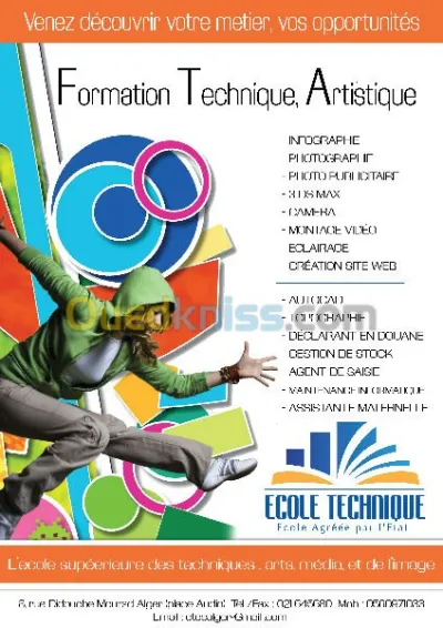 ECOLE TECHNIQUE place Audin lance la formation TOPOGRAPHIE DIPLOMANTE BT « diplôme Agréé par l'Etat » Durée de la formation: 24 Mois (21 Mois Théorie + 03 Mois Stage Pratique Gratui