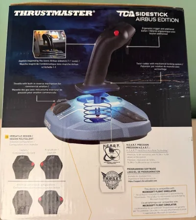 Thrustmaster TCA Sidestick Airbus Edition — Comme neuf. Acheté pour essai, très peu servi. Aucun défaut d’axe. Parfait pour l’aviation civile type Airbus sur MSFS/X-Plane. Fourn