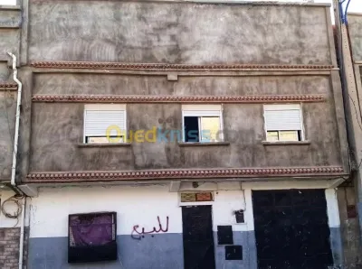 Maison à vendre cité baymout mostaganem Deux garage + cuisine +salon +cours+ sdb 1-Premier étage : grand salon + trois pièces +salle de bain + hall 2- deuxième étage :3pièces + t