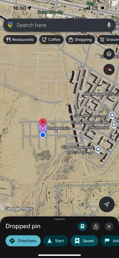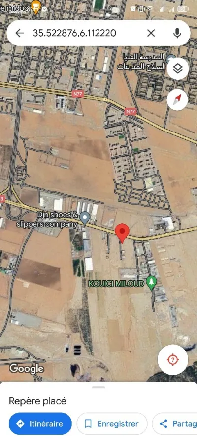 Lot terrain à vendre à hamla 1 batna Act notarié 150M 2 facades Toutes les papiers sont reglementaires La localisation :