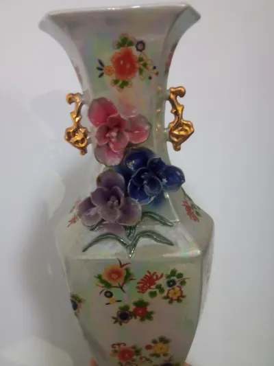 A VENDRE TRÈS TRÈS BEL ET JOLI VASE CHINOIS EN CÉRAMIQUE AVEC ALLIGATOR A LA FEUILLE D' OR, DIMENSION 1.10 / 0.64 M, D' ORIGINE DE HONG KONG