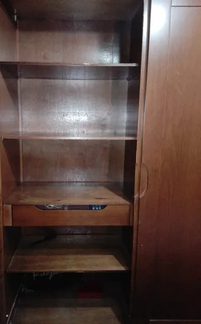 Je vends une armoire en très Bon état 100% hêtre façade et côté très solide, trois portes coulissantes avec garde-robe au milieu.