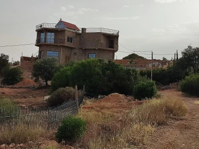 للبيع قطعة أرض ذات مساحة 120 متر مربع مكونة من طابقين مبنيين (هيكل و جدران خارجية) بتجزئة بوموس أمام المحكم