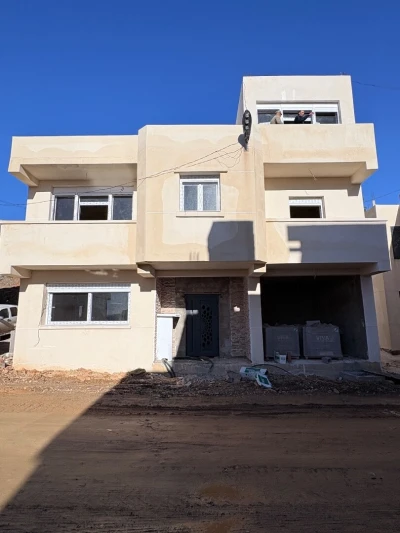 A vendre une villa de 250 M2 au total (surface bâti +jardin). dans la commune d' de foncier et acte notarié rez-dz-chaussé fini avec deux grands garages et une F 3 la surface batis 180 M