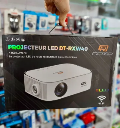 🎬 Vidéoprojecteur ROXA DT-RXW40 – FHD / 4000 lumens 💡 Luminosité élevée : 4000 lumens — images nettes même dans des pièces légèrement éclairées. 📺 Qualité Full HD :