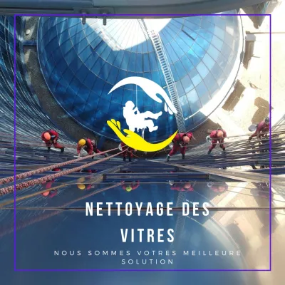 Notre entreprise NEED CLEAN Propose des services de nettoyage et entretien des vitres et façade vitré accès difficile avec des alpinistes ou avec camion nacelle ‚ nettoyage intérieur e