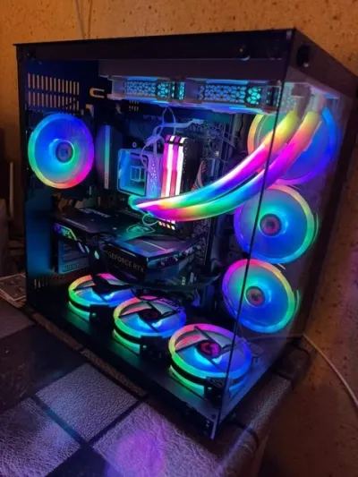 ETATS NEUF UTILISE POUR 1 MOIS CPU I7 13700K GPU RTX 4070TI RAM CORSAIR VENGENCE 32GB 3000mhz WATER COOLING MARS GAMING ULTRA 240ML A RGB CASE GAMEON EMPEROR BLACK SSD 236GB SSD nvme 512GB