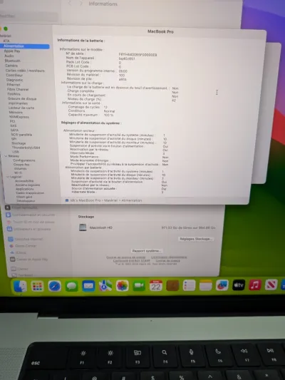 Macbook M3 max 16inch Etat : comme neuf Stockage: 4Tb Ram : 36G Etat de batterie: 90% cycle : 309