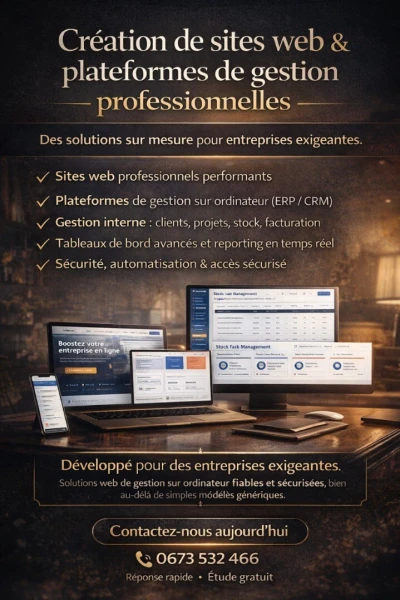 Besoin dâune solution digitale professionnelle pour votre entreprise ? DĂ©veloppeur Fullstack expĂ©rimentĂ©, je vous accompagne dans la digitalisation de votre activitĂ© avec des solutions