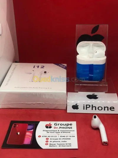 Écouteurs Bluetooth I12 TWS Spécifications: Modèle: I12 TWS Version Bluetooth: V5.0 Distance de transmission: 12 m Capacité de la batterie de chaque oreillette : 65mAh Temps