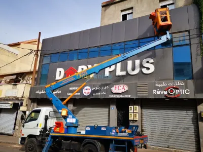 Location camion nacelle 14m تركيب الانارة العمومية (éclairage public) تركيب الألواح الشمسية les panneaux solaires Groupe électrogène Électricit�