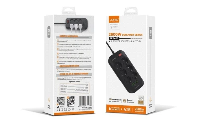 Le Ldnio SE6403 est une multiprise moderne et un chargeur USB en un. Avec six prises secteur de type F et quatre ports USB, vous pouvez alimenter tous vos appareils électriques du quotidien