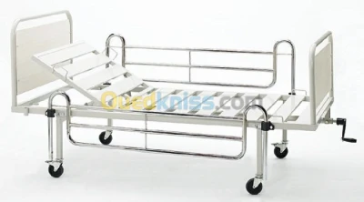 LIT DE RÉANIMATION À TROIS (03) POSITIONS Fabriqué en tubes d’acier rectangulaire 30 × 60 mm et en tôle métallique, montants en tube d’acier rond chromé 32 ø et support en mé