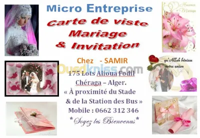 Spécialité : Carte de visite numérique & standard - Cartes d'Invitations - Cachet - Badge papier photo plastifier - prestations de Services - Tous Travaux Imprimeries.
