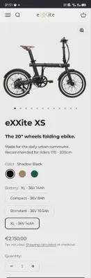 Découvrez le vélo électrique **exxite XS**, un modèle pliable et ultra-pratique pour vos déplacements urbains au quotidien. ✔️ **Caractéristiques:** - **Roues 20 pouces** robu