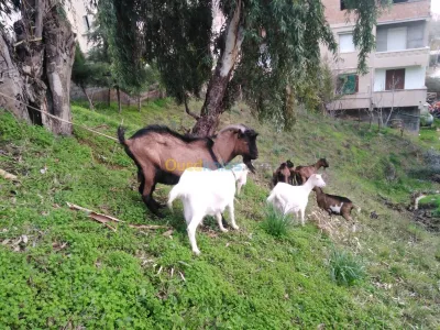 Famille de chèvre : un Bouc, une Chèvre et un petit, ils sont très dociles (a vendre ensemble et pas séparément) , prix: 5 millions عائلة ماعز: ذكر و أنثى و جد