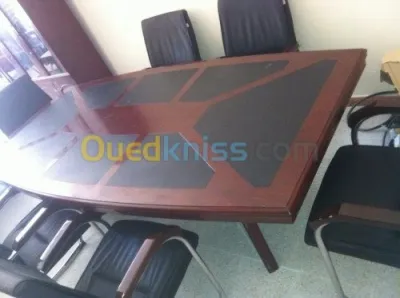 Je met en vente une table de réunion jdida 2m40 avec 6 chaises et un bureau en mdf avec caisson et retour et chaise PDG tout a un prix imbattable de