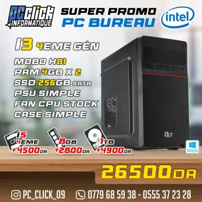 >> livraison 58 wilaya >> Pc Click informatique Blida O.Y vous propose Config PC BUREAU Intel I3 4eme / 8gb / 256gb toujours avec les meilleures prix de marché 🔹️معالج i3 الج