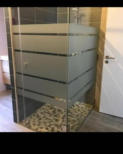 Mezghana Glass propose la fourniture et montage cabine douche italienne proie de baignoire sur mesure en verre trempé sécurit 8mm clair et sablé Le verre trempé sécurit est un verre pa