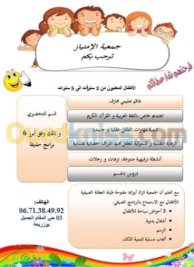 Creche El Imtiaz a le plaisir de vous annoncer l'ouverture des inscriptions pour l année scolaire 2018/2019 durant le mois dAout de 8h a 18h a petit prix mais avec beaucoup d'amour. par