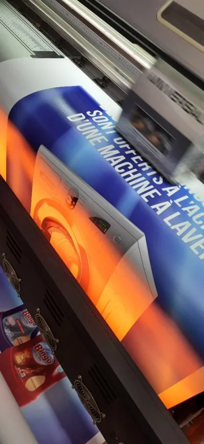 Impression numérique grand format 1440 dpi sur tous les supports : 👍👍 - Autocollants ( brillant / mat / transparent ) - Bâche 440 grs et 510 grs ( brillant / mat ) - One way vision -