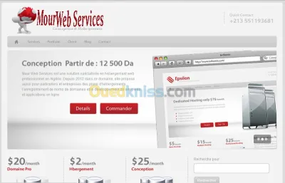 Commander un nom de domaine chez Edisoft avec seulement 1500 Da/An .com .org .biz .info .net Le .tk est gratuit. Ps : Mour Web Services est une solution spécialisée en héber
