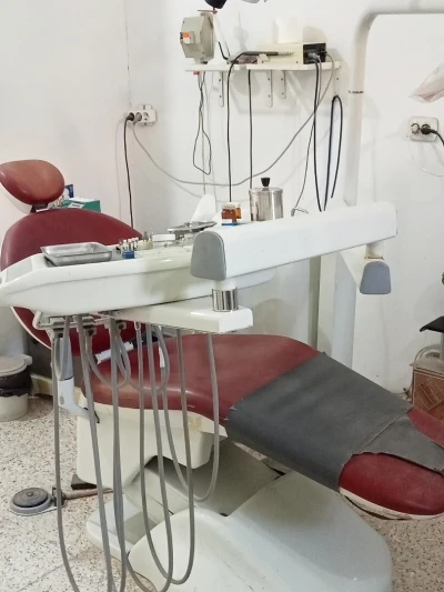 un lot de matériel dentiste occasion comprenant : Fauteuil dentaire Stérilisateur Autoclave Amalgamateur Lampe de blanchiment Lampe photo Compresseur Cavitron Et différent accessoires