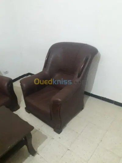 Je met en vente un feuteuille simple de couleur marron avec une petite table pour salon W wahda m les feuteille m9achra chwiya fel yedin mrc