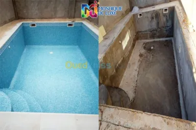 Ont mets a votre dispositions des equipes spécialise de Réalisation des piscines en béton armé toutes formes, système de filtration centralisé à skimmers ou à débordement, revêteme