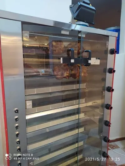 Materiel complet pour restaurant a vendre contient: armoir frigo grande,machine kebab,rotissoir mcm espagnol 8bras , chewaya a la braise inox(تع الفحم), table inox de poulet, 9 table