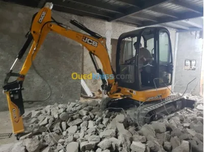Bonjour location mini pelle 2020 équipée d un brise de roche et godets 20 . et 45cm avec chauffeur éxperimonté 48 wilaya